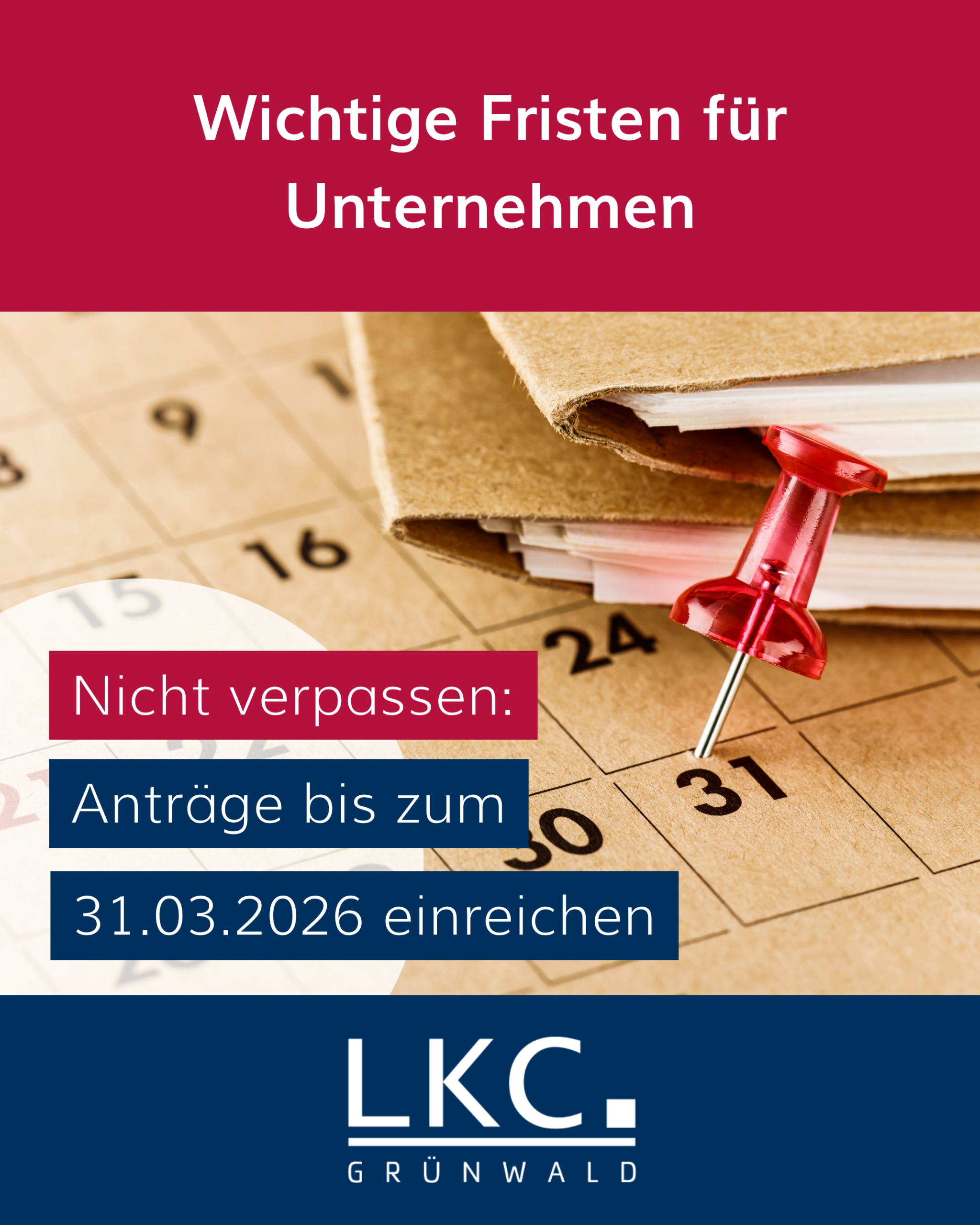 Wichtige Fristen für Unternehmen Der 31. März ist Stichtag für einige Anträge und Meldungen Grundsteuer: Steuerpflichtige können bei wesentlicher Ertragsminderung eines Grundstücks einen Antrag […]