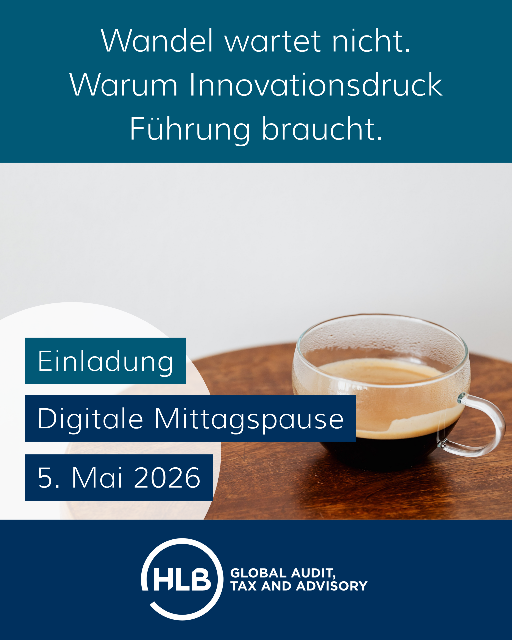 Einladung HLB Businessmeeting am 5. Mai 2026 Wandel wartet nicht. Warum Innovationssdruck Führung braucht. Veränderung und Druck prägen den unternehmerischen Alltag mehr denn je. Doch sie müssen […]